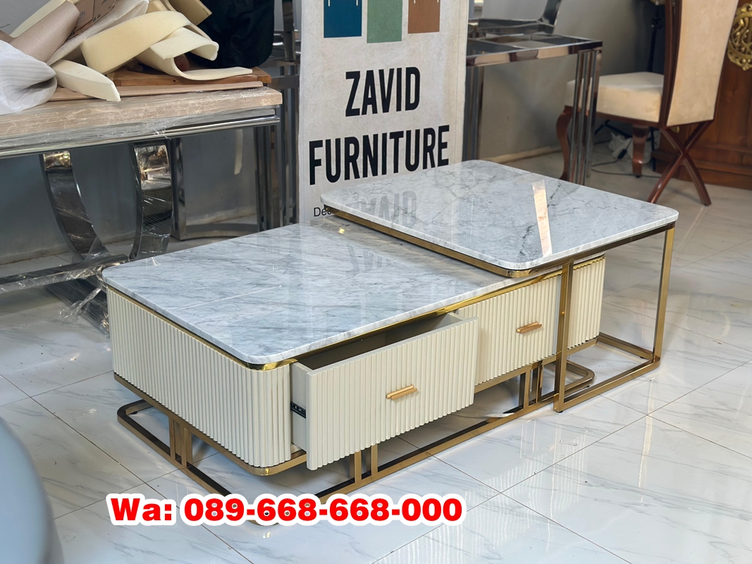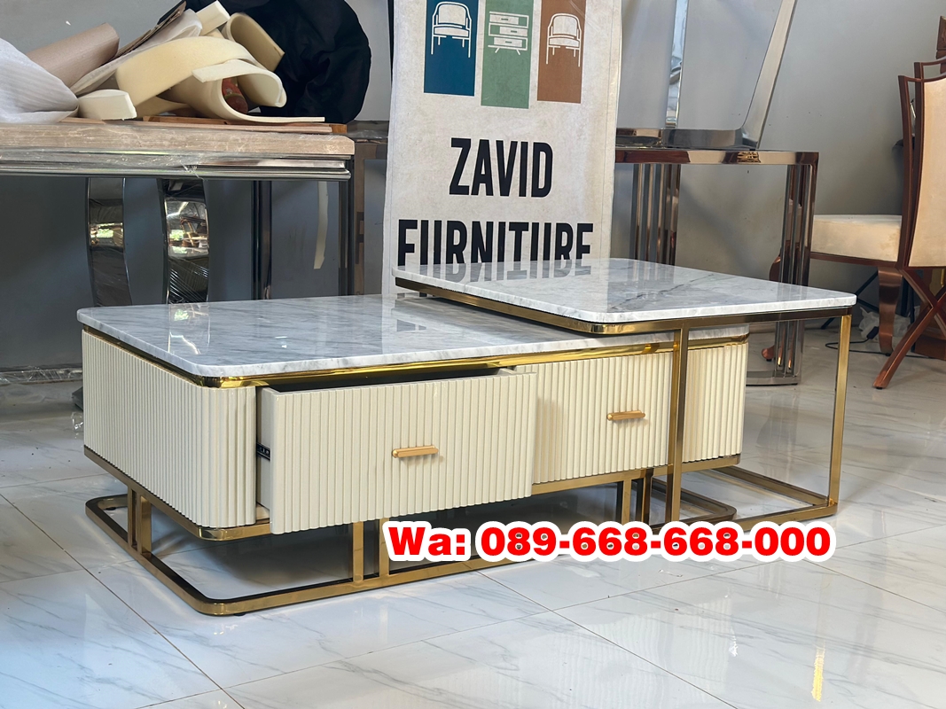 Gabungan keduanya bahan marmer dan stainless menciptakan Coffe table yang tidak hanya cantik, tetapi juga kokoh, tahan lama, dan mudah dirawat. Kombinasi ini sangat cocok untuk hunian bergaya modern, minimalis, glamor, hingga kontemporer. sehingga akan membuat ruang tamu anda semakin sangat cocok untuk untuk anda yang mengutamakan kesan bersih ,mewah, dan elegant.