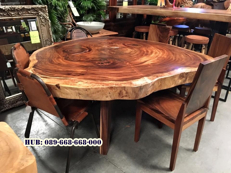 Kami merupakan toko yang menjual segala produk furniture seperti coffe table, meja konsul dan salah satunya yaitu meja makan. nah untuk meja makan kali ini sengaja kami desain menggunakan bahan kayu dengan bentuk bundar utuh . meja makan bundar ini selain dapat digunakan unuk meletakkan makanan saat makan, meja makan ini juga dapat digunakan untuk menambah desain interior ruangan dengan bentuk dan konsep yang unik. Jual Meja Kayu Utuh Bundar Terbaru ini memiliki bentuk yang unik tergantung dari bentuk kayu yang diguanakan. bukan hanya bentuknya meja makan bundar ini juga memiliki corak yang unik untuk membuat meja semakin sempurna.
