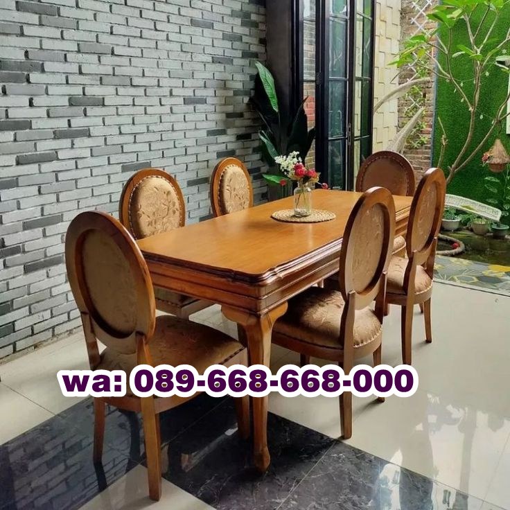 Bicara soal material, kayu adalah bahan yang masih di anggap terbaik untuk pembuatan berbagai macam produk furniture, termasuk meja makan. Anda pun harus mempertimbangkan beberapa faktor seperti menyesuaikan dengan ukuran ruangan, kapasitas atau jumlah penggua, model, dan material. Meja Makan Kayu Jati memiliki nilai estetika di samping fungsi utamanya, tampilanya yang tebal utuh itu membuat ruangan makan lebih hidup dan nyaman apalagi dengan desain yang minimalis solid, berbeda dengan meja makan modern yang sudah banyak di gunakan oleh banyak orang.
