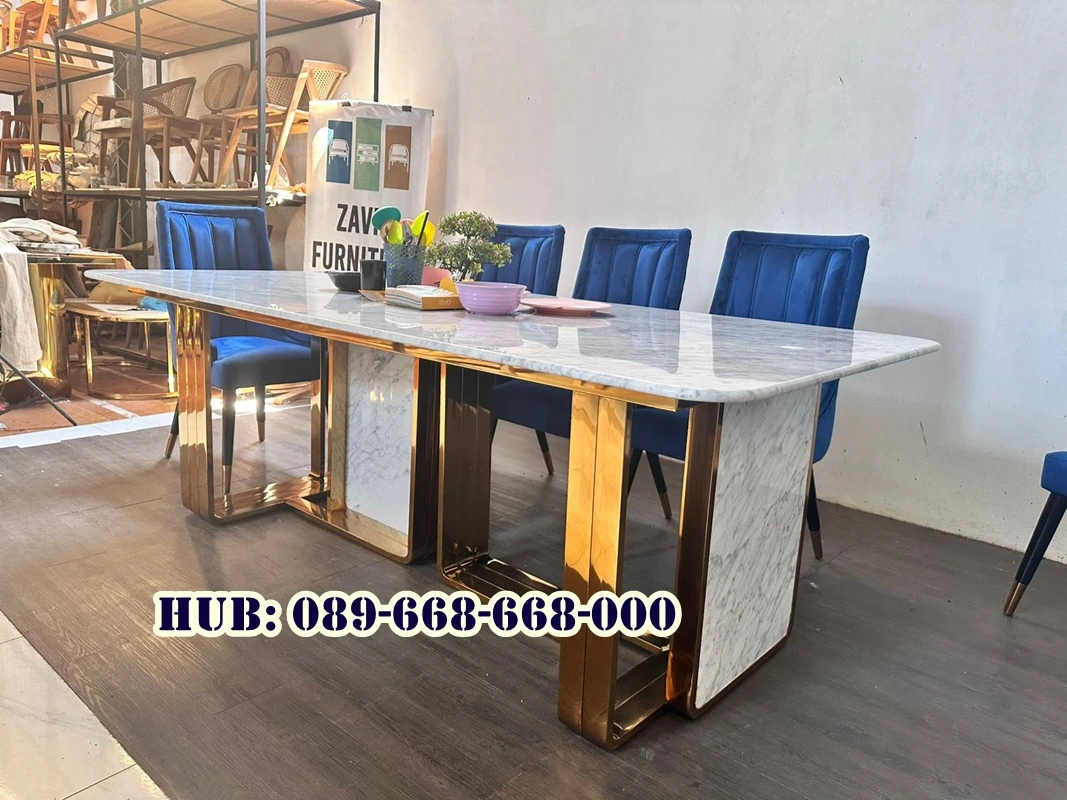 - Harga: Meja makan marmer termasuk dalam kategori furnitur premium, sehingga harganya relatif mahal dibandingkan meja dari material lain.