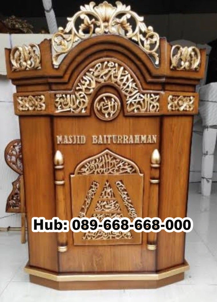 Podium Masjid adalah perlengkapan penting dalam ruang ibadah yang digunakan sebagai tempat khatib atau penceramah menyampaikan khotbah, ceramah, maupun pesan keagamaan. Podium ini tidak hanya berfungsi sebagai media penopang naskah dan mikrofon, tetapi juga menjadi elemen estetika yang memperindah interior masjid. Podium ini sering kita jumpai di berbagai masjid, contohnya masjid-masjid yang ada di Demak.