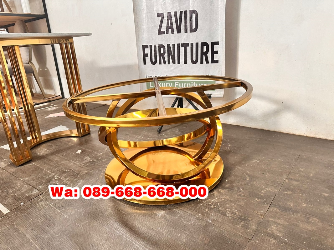 Kaki Coffe Table Stainless Gold ini terbuat dari bahan stainless gold pilihan dengan bentuk bulat menggabungkan kemewahan visual dengan kekuatan material, menjadikannya pilihan yang sangat digemari dalam desain rumah bergaya glam, kontemporer, atau minimalis mewah. Kaki Coffe Table Stainless Gold ini akan sangat cocok dikombinasikan dengan top meja marmer atau dikombinasikan dengan kaca. Maka dari itu toko furniture indonesia kami menyediakan berbagai produk berbahan stainless lainnya misalkan meja sudut dan meja makan marmer.