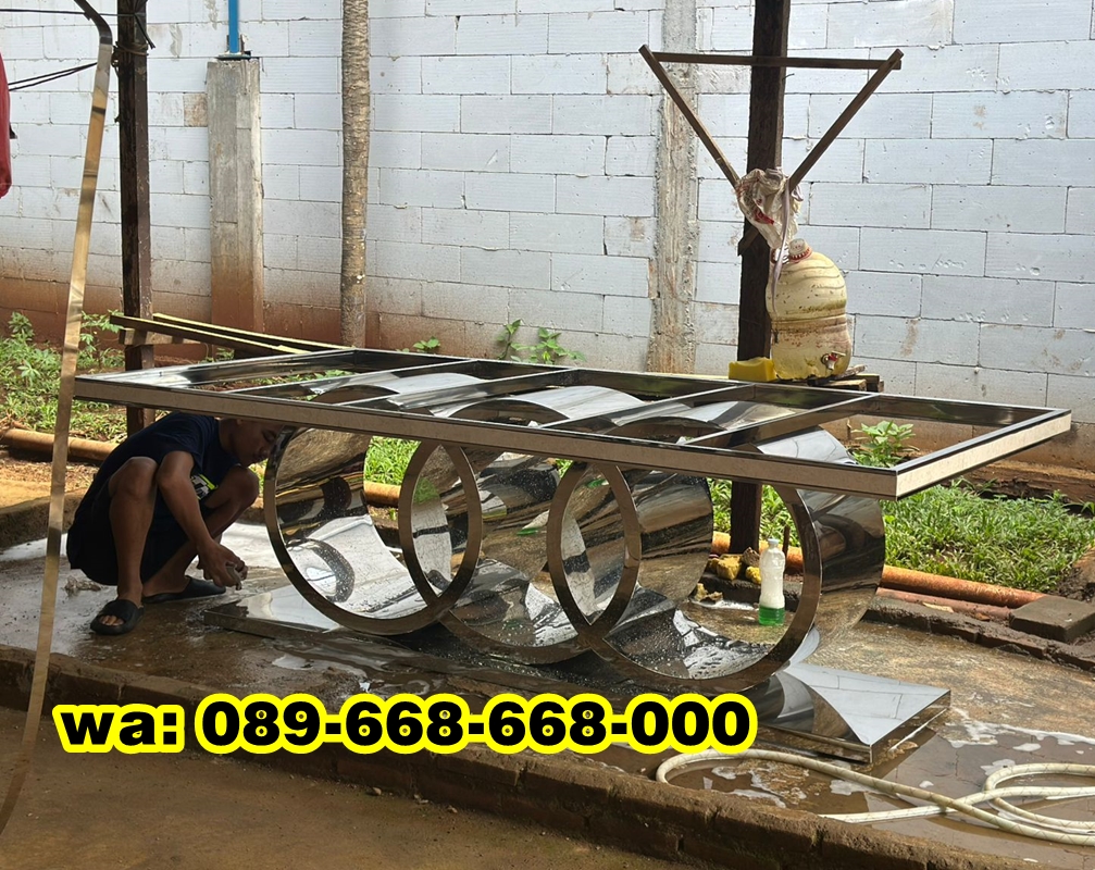 Kaki Meja Makan Minimalis Stainless ini kami buat dengan bahan terbaik yang tidak hanya kokoh tetapi juga dapat menghadirkan nuansa modern, mewah dan bersih. stainless adalah paduan logam yang terdiri dari besi, krom, dan unsur lainnya seperti nikel dan molibdenum. Kandungan krom minimal 10,5% dalam stainless steel menciptakan lapisan tipis yang melindungi permukaan dari karat dan oksidasi.