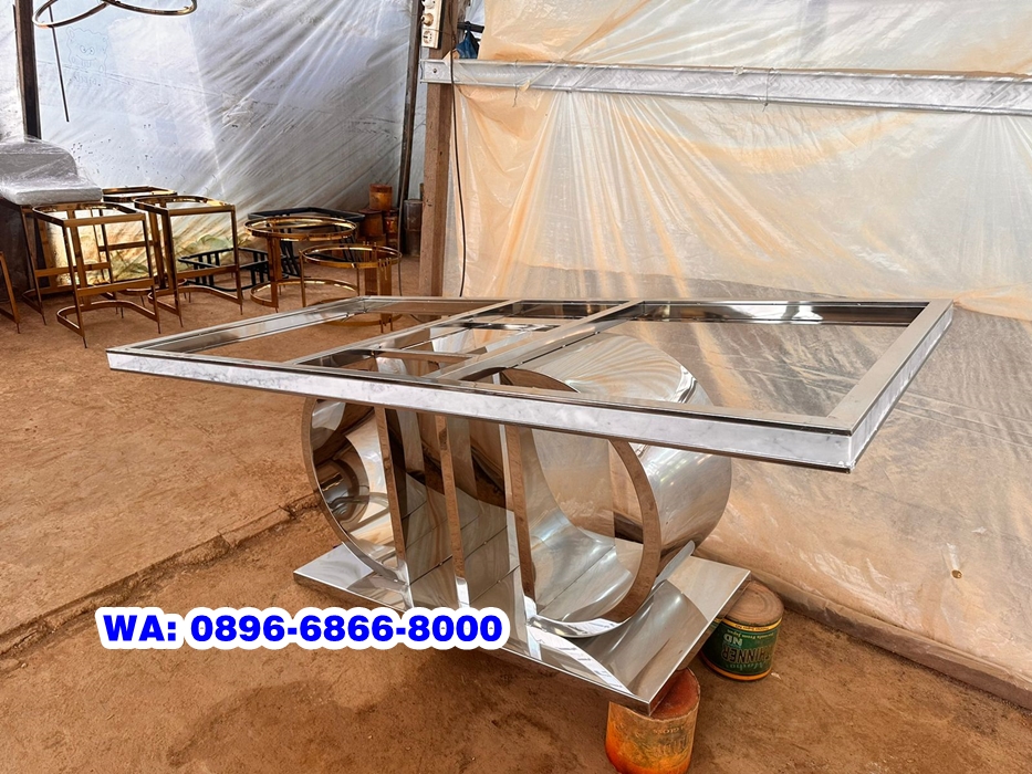 kami merupakan produsen resmi yang menjual berbagai bahan dari meja marmer, coffe table, hingga kaki meja yang terbuat dari bahan stainless seperti pada gambar. Kaki Meja Stainless Steel telah menjadi pilihan populer dalam desain interior modern saat ini. Kombinasi antara stainless steel yang kuat dan mewah menciptakan elemen furniture stainless yang tidak hanya fungsional tetapi juga estetis. Kaki Meja Stainless Steel Silver Produsen Resmi di tahun ini sangat rame dipasaran indonesia, Mungkin juga untuk 20 tahun kedepan desain kaki meja stainless tetap jadi raja dalam menguasai furniture meja makan.