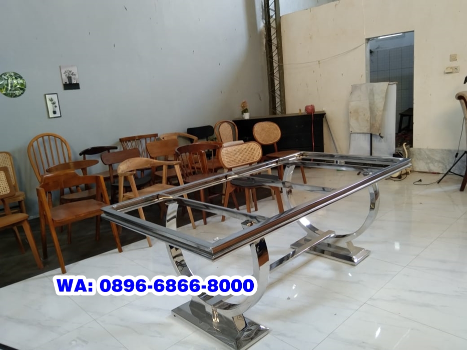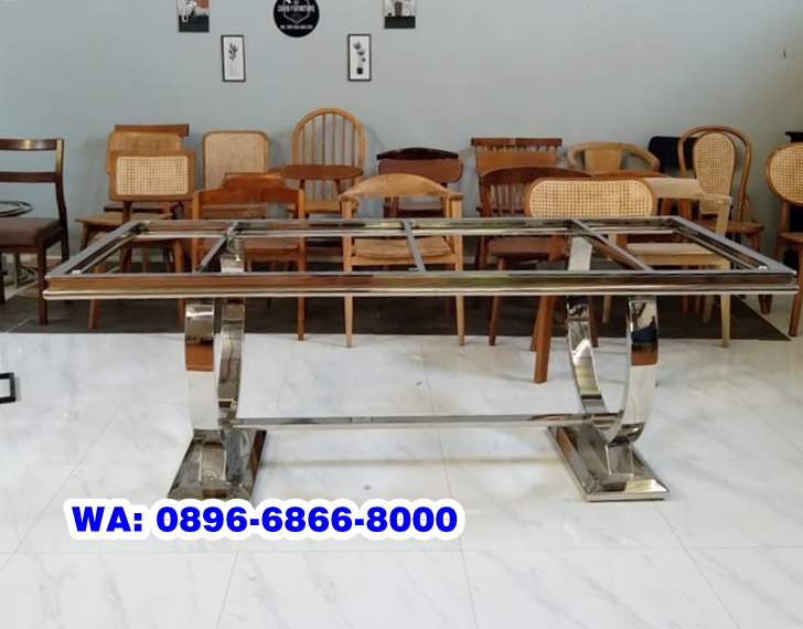 Kaki meja yang terbuat dari bahan stainles dapat memberikan kesan mewah tersendiri untuk ruang makan anda. kaki meja makan stainles ini terdiri dari berbagai macam desian yang sangat menarik dan tentunya glamor. untuk saya pribadi lebih menyukai kaki meja yang terbuat dari bahan stainles dengan finishing warna silver karena kaki meja stainles dengan warna silver memberikan kesan yang elegan, bersih, dan futuristik. Warna silver ini mudah dipadukan dengan berbagai jenis bahan meja lainnya, seperti kayu, kaca, atau marmer, menjadikannya fleksibel untuk berbagai gaya dekorasi.