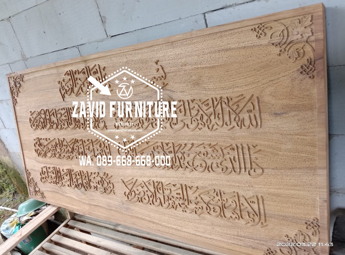 Itu tadi beberapa contoh bentuk kaligrafi kayu dengan tulisan Ayat Kursi yang dapat anda pertimbangkan. Ayo lengkapi dekorasi interior masjid dan hunian anda dengan kaligrafi Ayat Kursi ini. Hiasan dinding berbentuk persegi dengan tulisan Arab timbul menjadikan suasana ruangan lebih religius dan ramai.