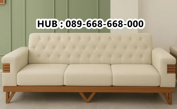 Kursi Sofa Kayu Minimalis Tufted Cream Cilacap