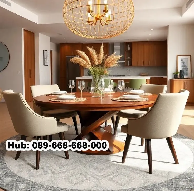 Karena tampilannya dari meja makan berbentuk bulat tidak akan membutuhkan banyak ruang. Selain itu, meja ini tidak memiliki sudut, sehingga memudahkan orang untuk bergerak di sekitarnya. Untuk memberikan suasana yang lebih menarik, cukup tambahkan karpet di bawah meja makan tersebut.