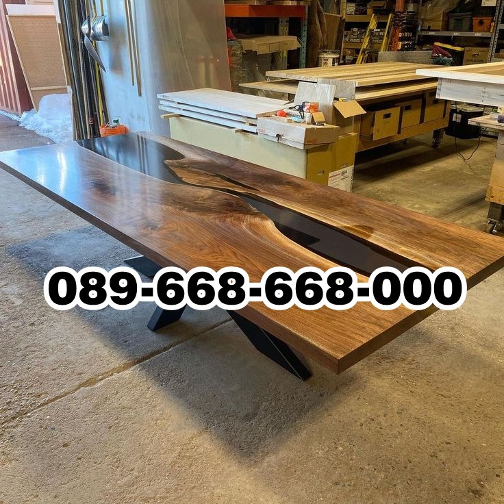 Kombinasi Resin pada meja makan memberikan efek kaca transparan yang halus, sementara kayu mempertahankan tampilan alami dengan pola serat yang cantik. Resin yang digunakan biasanya berwarna transparan atau berwarna-warni, menciptakan efek yang menonjolkan tekstur kayu alami sambil menambah kesan modern. Meja Kayu Resin Kaki Besi memiliki Desain meja kayu resin kaki besi ini sering kali minimalis dengan garis bersih, menjadikannya mudah dipadukan dengan berbagai gaya interior, baik itu modern, industrial, maupun Scandinavian. Meja kayu resin kaki besi tidak hanya memiliki tampilan yang menawan tetapi juga kualitas yang sangat baik. Kayu yang digunakan dalam membuat meja makan ini yaitu menggunakan bahan jenis kayu trembesi yang terkenal kokoh dan tahan lama.