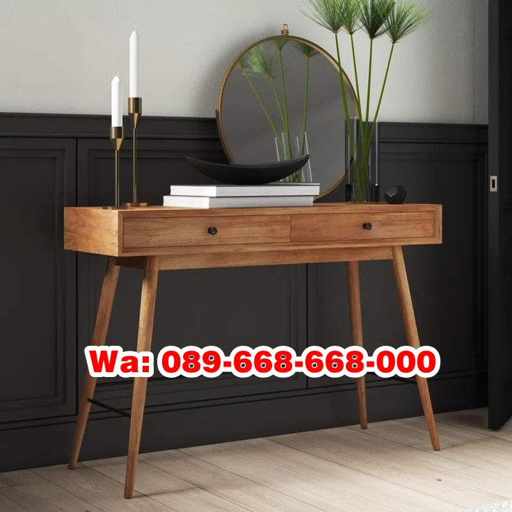 Dalam pembahasan kali ini akan disampaikan kepada anda para pembaca sekalian bagaimana apik dan cantiknya penggunaan kayu jati untuk membuat Meja Konsol Kayu Jati Dua Laci meja ini dibuat dari kayu jati yang kuat dan tahan lama, serta dilengkapi dua laci fungsional, ia bukan sekadar dekorasi melainkan investasi estetika dan kepraktisan jangka panjang.
