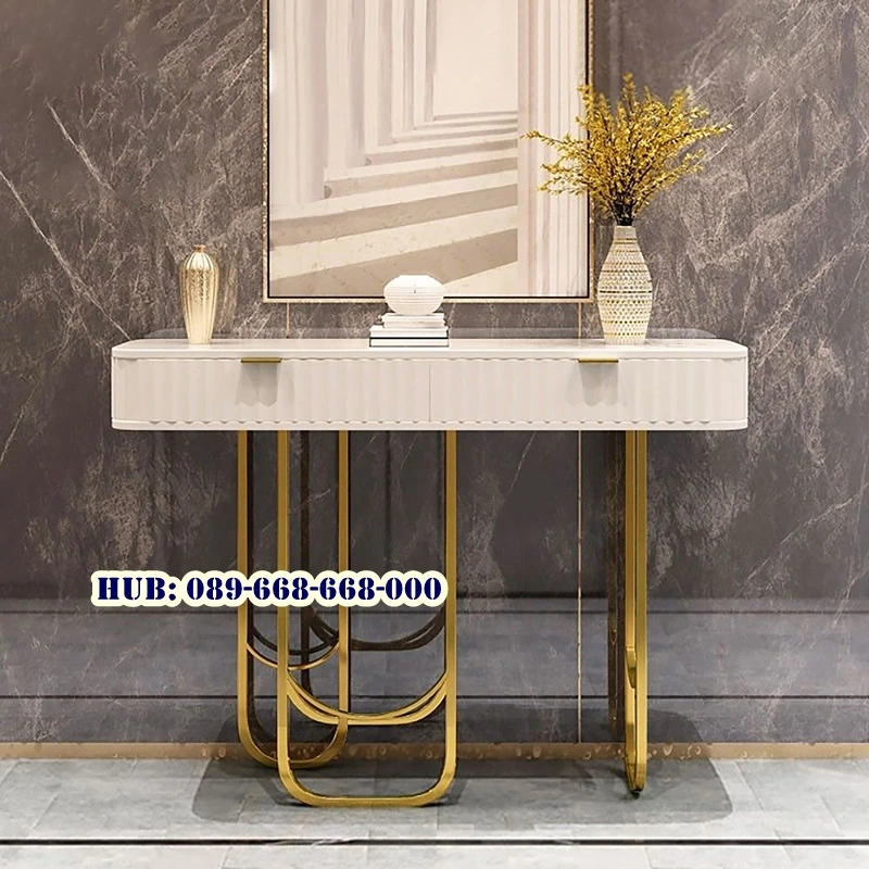Permukaan meja konsol ini menggunkan bahan marmer yang halus memudahkan proses pembersihan. Cukup dengan kain lembap atau lap khusus, noda dan sisa makanan dapat hilang dengan cepat. Sifat ini menjadikannya lebih higienis, karena tidak mudah menyerap kotoran dan bau.