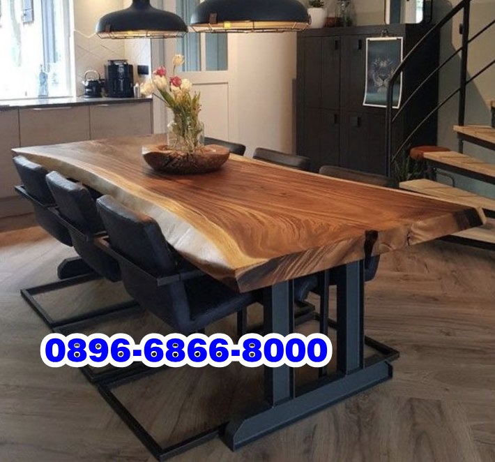 Meja Makan Kayu Minimalis Karawang ini terbuat dari bahan kayu trembesi utuh tanpa ada sambungan sama sekali dengan kaki meja makan yang terbuat dari bahan besi sehingga lebih terlihat minimalis dan kokoh.