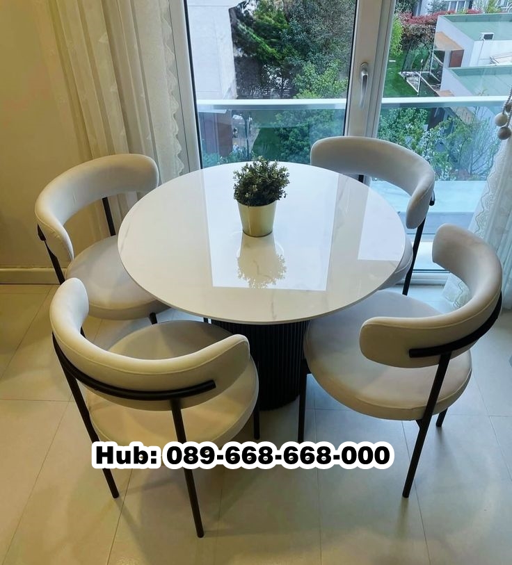 Namun soal penataan ruangan minimalis juga perlu diperhatikan barang furniture apa saja yang perlu digunakan, ahgar bisa lebih serasi, furniture yang dipakai harus benar benar menyesuaikan ruangan, Seperti Meja Makan Marmer 4 Kursi ini adalah pilihan yang sangat epik untuk diterapkan di ruangan makan Anda. Dengan 4 kursi yang melengkapi tentu akan membuat makan bersama dengan keluarga tercinta Anda.