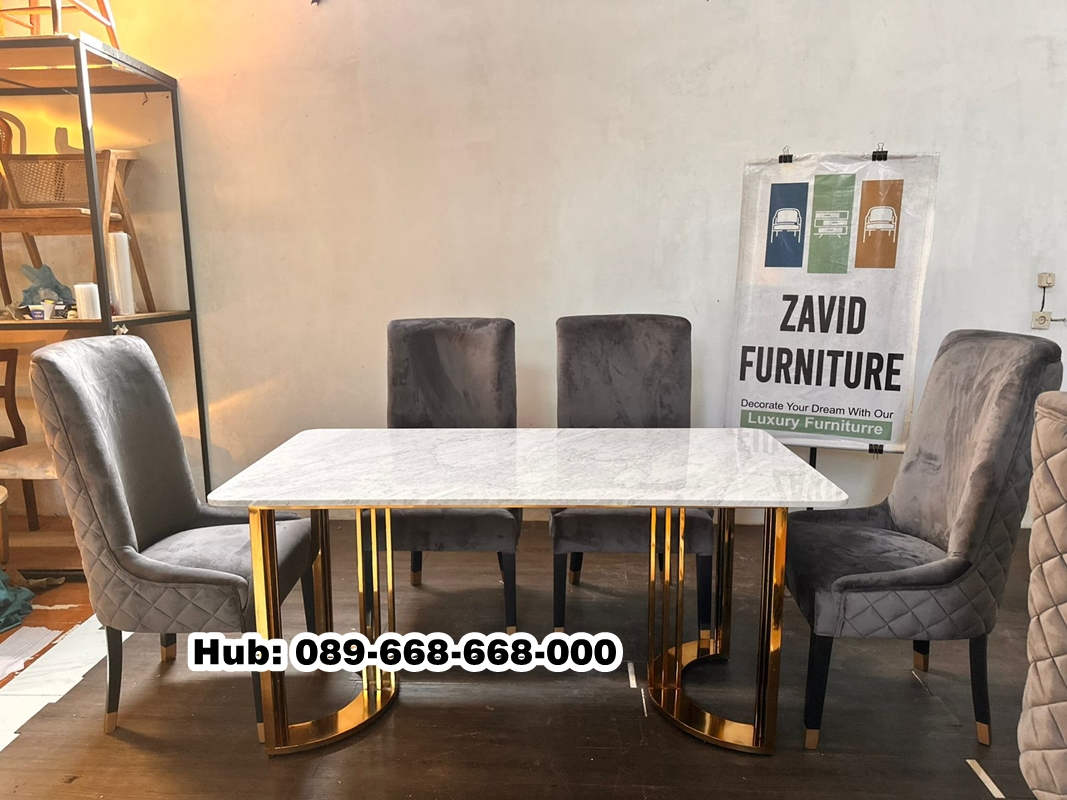 Apalagi jika sebuah dengan bentuk yang utuh dengan sebuah desain yang unik dengan kaki stainless gold termewah. Memperhatikan sebuah ruangan di dalam rumah memanglah sangat penting apalagi khusunya dengan ruangan makan karena yang pastinya hampir setiap harinya anda butuhkan untuk melakukan kegiatan makan bersama dengan keluarga anda dan supaya anda dengan keluarga anda bisa melakukan kegiatan makan bersama dengan sangat nyaman tentunya anda bisa memilihnya dengan sebuah furniture meja makan yang berkualitas juga salah satunya dengan meja makan marmer 6 kursi yang kami produksi ini karena yang pastinya kami buat dengan bahan utamanya dari marmer dan marmer dan kami melengkapinya juga dengan desain 6  kursi yang pastinya akan sangat cocok jika anda gunakan sebagai meja makan untuk di rumah anda dan yang pastinya keluarga anda juga nyaman.