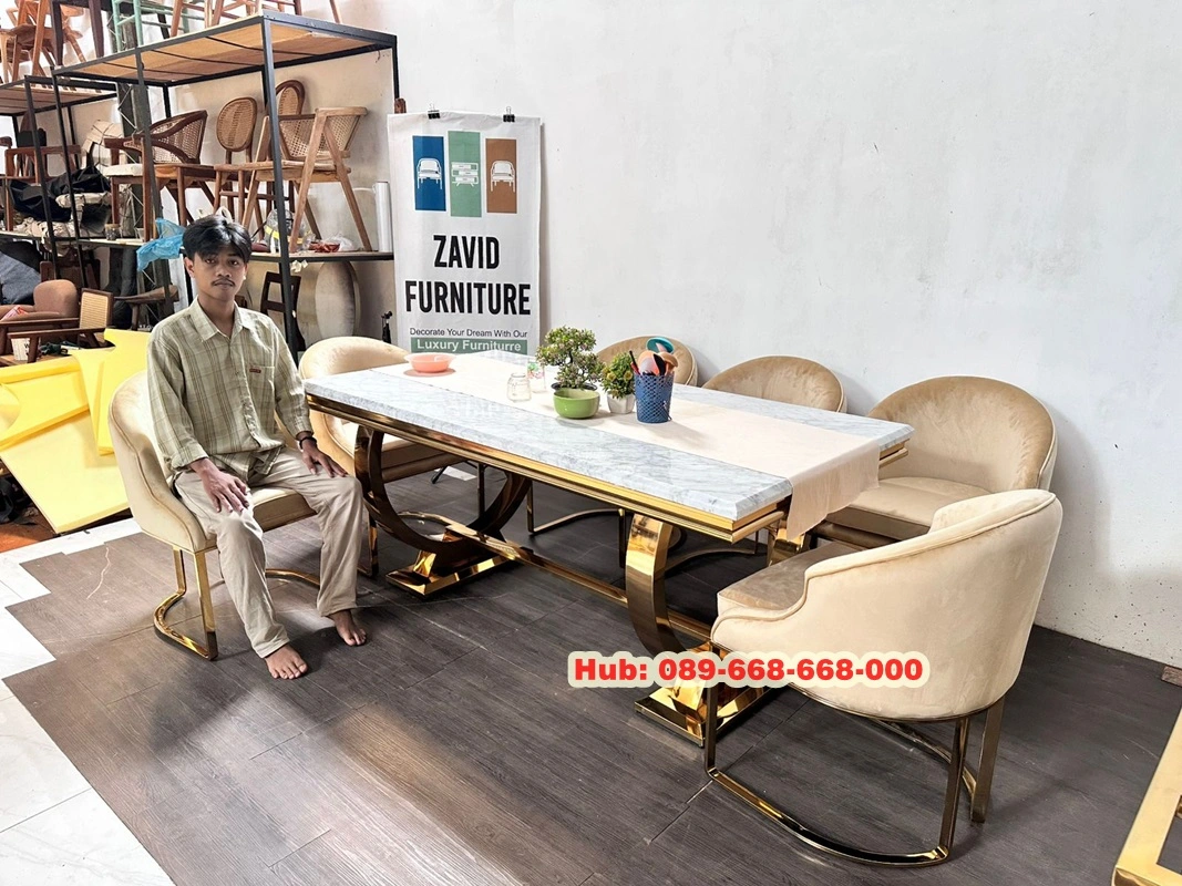Keunggulan utama meja makan marmer gold terletak pada daya tahannya. Marmer dikenal tahan lama dan tidak mudah usang, sehingga tetap terlihat indah meskipun digunakan dalam jangka waktu panjang. Sementara lapisan atau detail gold pada kaki meja menambahkan sentuhan artistik sekaligus mempertegas kesan mewah. Tak hanya dengan desain dari meja makan aja, tapi ada juga desain dari kaki meja yang akan anda pilih nantinya juga anda bisa memilihnya . kaki stainless apalagi dengan kaki stainless pastinya juga sangat kokoh dan tahan lama, karena stainless aja memiliki tekstur yang sangat mewah serta sangat kokoh apalagi jika di padukan dengan meja makan marmer tentunya memiliki bentuk yang minimalis mewah yang pastinya sangat diminati juga oleh banyak orang dengan kualitasnya yang sangat bagus dan mewah.