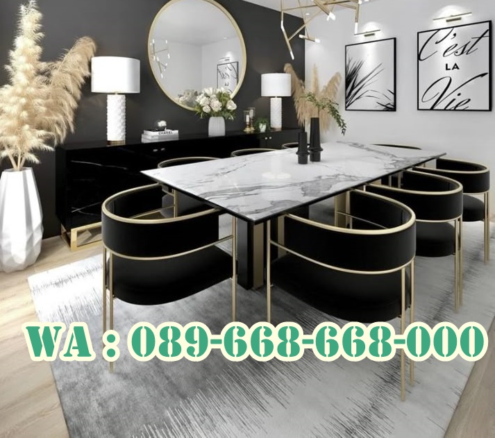 Ruangan kedua setelah ruangan tamu yang sangat penting juga untuk di perhatikan adalah ruangan makan. dan di dalam ruangan makan pastinya banyak perabotan furniture yang dapat anda pilih dan tempatkan di ruangan makan anda tersebut, apalagi buat kenyamanan keluarga anda pastinya tidak sembarangan kan jika memilih produk furniture, untuk itulah kami memberi tahukan kepada anda bahwasanya anda dapat memilih meja makan marmer ini karena itu pilihan yang sangat tepat, karena apa? Karena meja makan tersebut kami buat dengan bahan utamanya dari marmer pilihan yang kualitasnya bagus.