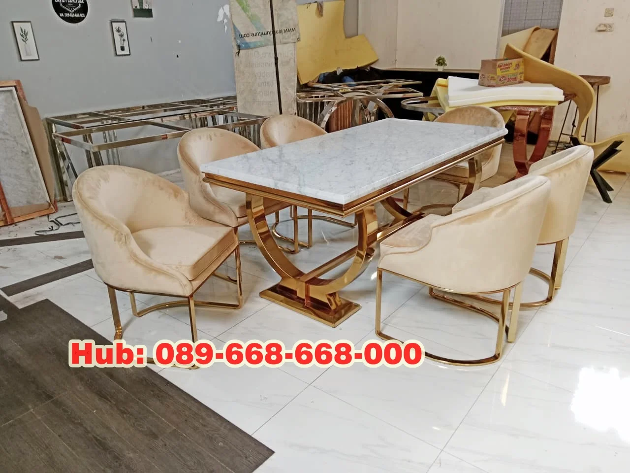 Nah pertama tama saya akan menjelaskan terlebih dahulu tentang apa itu marmer, dan bagi anda yang belum tahu apa itu marmer mari aku kasih tahu, marmer? Marmer adalah sebuah batuan kristalin atau batuan kapur yang memiliki bentuk corak cantik bergaris abstrak, dan marmer juga memiliki bentuk yang sangat keras juga. Tetapi, dengan bentuknya yang sangat keras marmer ini memiliki ketahanan bentuk yang sangat kokoh dan tahan lama lohh..makanya banyak yang menyukainya untuk di jadikan bahan utama dalam pembuatan berbagai macam produk furniture menggunakan marmer. meja makan kali ini kami berinama Meja Makan Marmer Italia Minimalis sebab terbuat dari bahan marmer asli dari negara italia sehingga terkenal kuat, padat, dan memiliki pola urat alami yang elegan. Bahan stainless dipilih untuk membuat rangka kaki kursi sebab stainless mengandung kromium yang membentuk lapisan pelindung, mencegah oksidasi dan karat sehingga cocok untuk lingkungan yang lembap atau basah. selain itu Material stainless juga sangat kuat dan tahan lama, memastikan kursi dapat digunakan dalam jangka waktu yang panjang dan memiliki struktur yang kokoh sehigga sangat cocok untuk membuat Meja Makan Marmer Italia Minimalis agar lebih terkesan modern dan mewah.