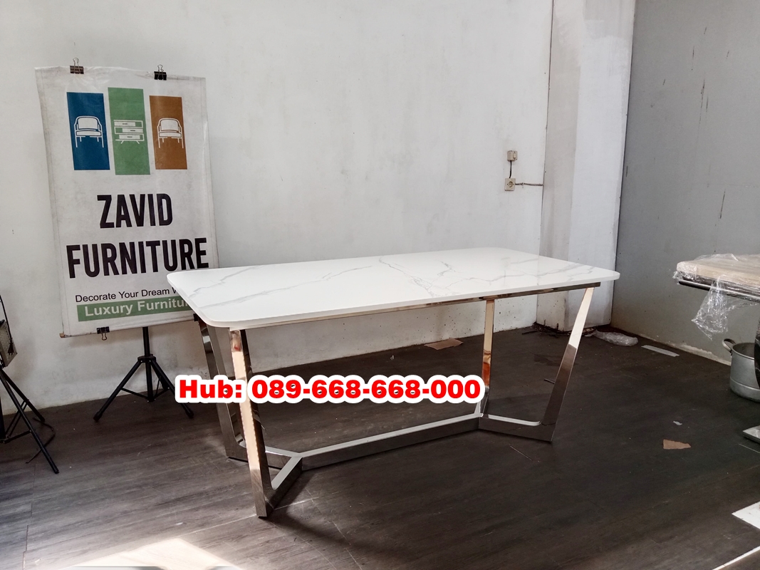 Produk meja makan kali ini kami buat dengan kaki meja berbahan stainless dengan desain yang simple sehingga dapat digunakan di berbagai interior rumah. Meja Makan Stainless Minimalis ini dapat digunakan di apartemen, hotel, villa, restoran juga lhoo mengapa kami memilih dengan bahan stainless ya karena memmang bahan yang satu ini memiliki kualitas yang tidak perlu diragukan lagi. Bahan stainless Stainless steel terbuat dari logam yang sangat rapat, sehingga memiliki kekuatan dan daya tahan tinggi terhadap retak, penyok, dan kebocoran. Stainless steel mengandung kromium yang membentuk lapisan oksida pelindung di permukaannya, mencegah karat dan korosi, Sifatnya yang tahan lama membuatnya tidak mudah rusak dan dapat digunakan dalam jangka waktu lama.