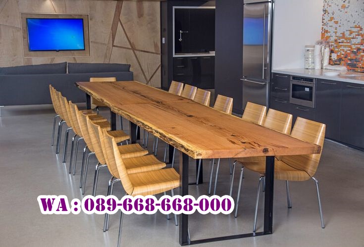 Bagian utama dalam memnuhi ruangan kerja terutama itu adalah ruang kantor atau perusahaan, tentu sja mempunyai furniture kantor yang nyaman. namun alangkah baiknya jika bukan hanya nyaman digunakan namun juga bisa digunakan sebagai meja meeting seperti produk Meja Meeting Kayu Panjang ini. meja meeting ini terbuat dari bahan kayu trembesi sehingga rapat menjadi lebih nyaman dan menarik. Kayu trembesi memiliki ukuran yang besar, bahkan bisa mencapai 1,5 meter, sehingga cocok untuk membuat meja meeting berukuran besar yang dapat menampung banyak orang. Kami menggunkana Meja Meeting Kayu Panjang ini dengan top table kayu suar serta kaki mejanya kami padukan dengan besi. Penggunaan besi pada meja suar tentunya akan menambah kesan yang kuat, kokoh dan juga terlihat lebih elegant