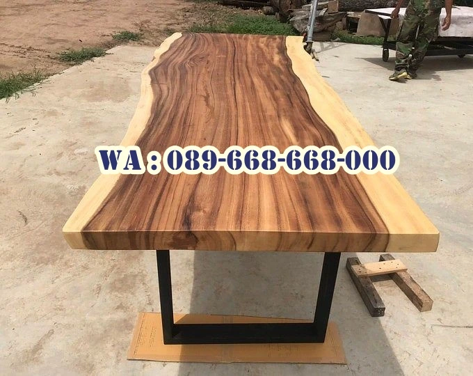 Meja Meeting Trembesi Kaki Stainless Kota Tulungagung memiliki desain yang minimalis namun tetap elegan. Kombinasi antara kayu trembesi yang natural dengan kaki stainless warna hitam yang mengkilap memberikan kesan modern dan kokoh. Kayu trembesi solid memberikan kekuatan dan keunikan pada tampilan meja. Kaki meja terbuat dari stainless hitam, yang dikenal dengan kekuatan, ketahanan terhadap karat, dan tampilan yang modern. Meja ini berfungsi sebagai tempat pertemuan atau rapat, dengan desain yang menarik dan fungsional. Tulungagung adalah sebuah kabupaten di Jawa Timur yang terkenal penghasil marmer terbesar di Indonesia.Pilih Meja Meeting Trembesi Kaki Stainless Kota Tulungagung dapat meningkatkan suasana ruang meeting menjadi lebih menarik dan profesional.