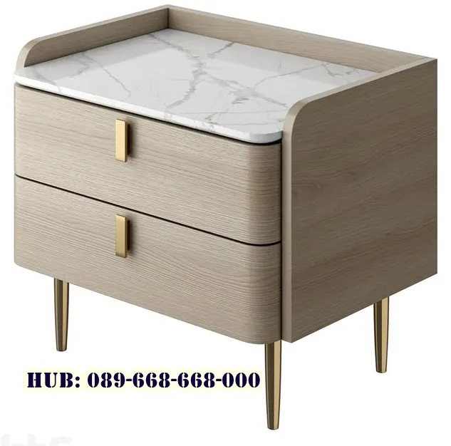 Meja atau lemari kecil yang diletakkan di samping tempat tidur untuk menyimpan barang-barang yang dibutuhkan saat malam hari, seperti lampu, ponsel, buku, atau obat-obatan. Meja ini berfungsi ganda sebagai tempat penyimpanan praktis dan elemen dekorasi untuk mempercantik ruangan. Meja nakas yang kami kenalkan ini ditambah dengan marmer asli sebagai permukaan atas dari meja ini, Meja Nakas Kombinasi marmer berfungsi sebagai tempat penyimpanan praktis yang memudahkan akses barang-barang penting yang sering digunakan setiap hari, seperti ponsel, kacamata, jam tangan, dan pengisi daya.