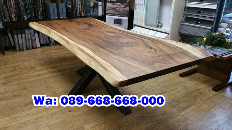 Kayu trembesi berasal dari pohon Albizia saman, yang tumbuh subur di daerah tropis seperti Indonesia. Pohonnya bisa tumbuh sangat besar dengan diameter batang mencapai lebih dari 2 meter ini yang memungkinkan terciptanya meja utuh tanpa sambungan (solid slab) yang sangat dicari saat ini. gradasi warna coklat tua di tengah (heartwood) yang berpadu dengan pinggiran berwarna putih gading atau kuning muda.sedangkan besi merupakan jenis bahan yang memiliki daya tahan sangat kokoh dan tahan terhadap korosi sehingga kedua bahan ini sering dijadikan sebagai bahan utama dalam membuat meja rapat, Tak hanya digunakan sebagai rapat saja, namun juga bisa memenuhi kriteria sebagai meja makan, pada saat ada acara tamu besar datang, gathering, atau perayaan, meja rapat ini dapat dialihfungsikan sebgaai meja makan untuk menghidangkan makanan. Hemmm…sangat praktis kan..??