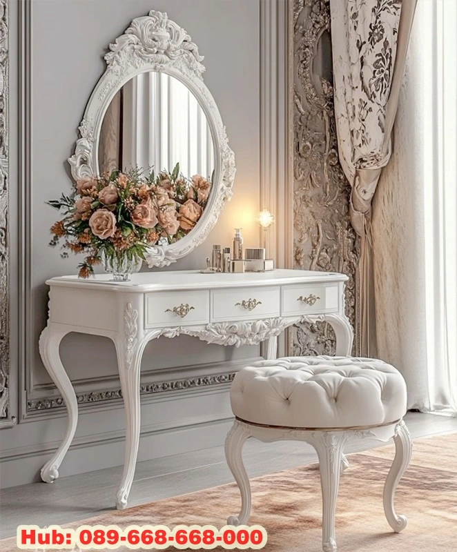 Sebenarnya meja rias dapat menggunakan berbagai jenis finishing mulai dari warna natural. namun kali ini kami membuat meja rias dengan finishing cat duco putih untuk memberikan kesan yang lebih elegant dan bersih. Selain fungsi utamanya sebagai tempat berhias, meja rias kayu jati cat duco juga dapat menjadi elemen dekoratif yang mempercantik ruangan. Sentuhan finishing duco pada kayu jati memberikan kesan timeless, sehingga meja ini tidak lekang oleh tren.