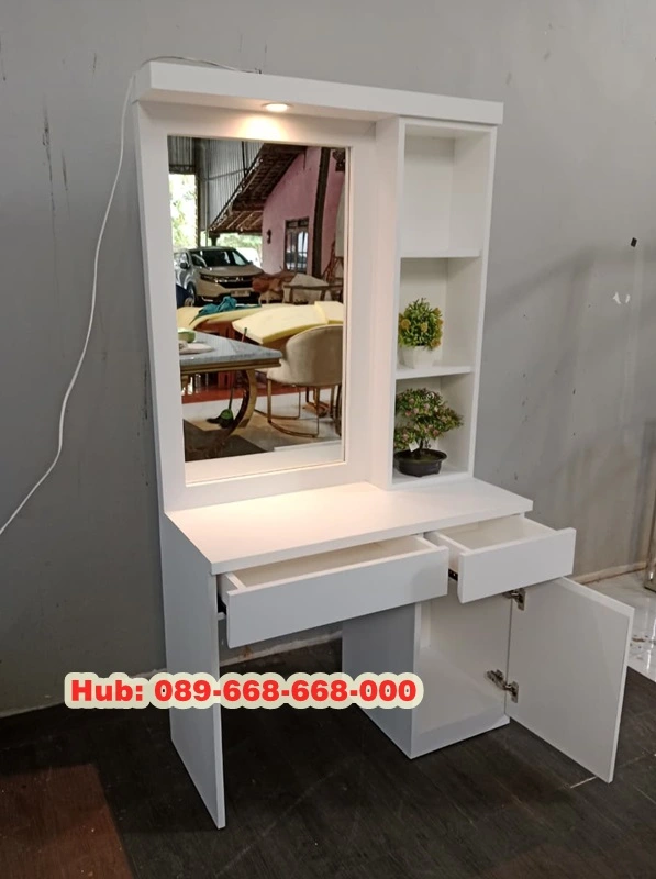 Selain estetika, Meja Rias Minimalis Lampu ini juga menawarkan fungsi penyimpanan yang praktis. Beberapa model dilengkapi dengan laci, rak kecil, hingga meja lipat untuk menyimpan kosmetik, perhiasan, parfum, dan perlengkapan lainnya agar tetap tertata rapi. Dengan begitu, Anda tidak hanya mendapatkan meja rias yang indah dipandang, tetapi juga fungsional untuk kebutuhan sehari-hari.