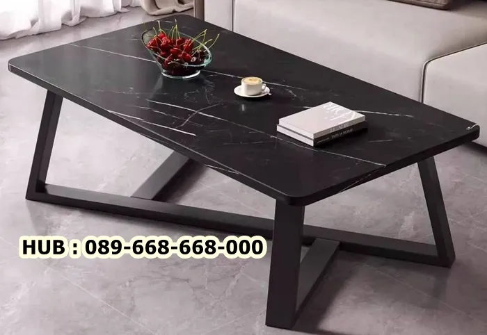 Meja tamu merupakan furniture penting yang wajib ada di ruang tamu karena secara fungsional meja tamu berfungsi sebagai tempat meletakkan berbagai benda yang digunakan dalam aktivitas harian, seperti minuman, camilan, majalah, remote TV, hingga dekorasi yang mempercantik ruangan. Dengan adanya meja tamu, penghuni rumah dapat dengan mudah mengakses barang-barang tersebut tanpa harus bangkit atau mencari tempat lain, sehingga aktivitas bersantai atau menyambut tamu menjadi jauh lebih nyaman. Kali ini kami akan memperkenalkan produk Meja Tamu Marmer dengan permukaan marmer asli warna hitam yang mewah dan menawan, membuat siapapun terpikat tentunya.