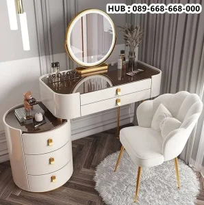 Tampilan yang bersih dan berkelas membuat Model Meja Rias Marmer Terlaris ini tidak hanya berfungsi sebagai tempat berdandan, tetapi juga sebagai elemen dekorasi yang mempercantik ruangan, itulah mengapa produk ini menjadi produk terlaris. Keunggulan utama dari meja rias marmer terlaris terletak pada material marmer yang digunakan pada bagian top meja. Marmer dikenal memiliki motif alami yang unik dan permukaan yang halus, sehingga memberikan kesan premium.