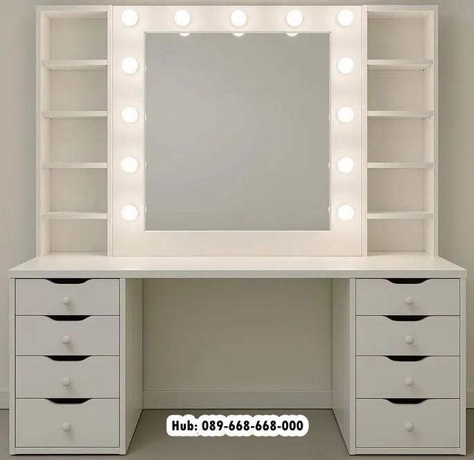 Meja rias dengan finishing warna duco ini menambah kesan bersih dan rapi di dalam sebuah kamar apalagi ditambah dengan beberapa laci penyimpanan yang bisa digunakan sebagai tempat menyimpan aneka macam jenis barang-barang, serta peralatan kecantikan dengan permukaan mejanya yang luas bisa digunakan untuk menata perlengkapan makeup, skincare maupun parfum, dengan meja rias ini, maka bisa menata alat perawatan wajah dan tubuh, serta produk kecantikan dengan rapi.