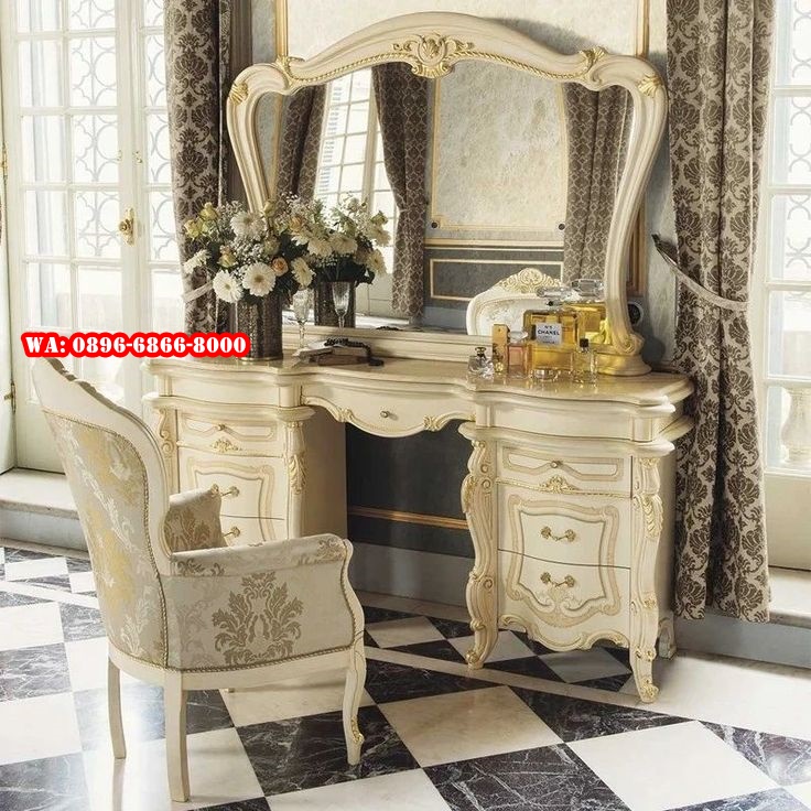 Ciptakan ruang rias yang penuh keanggunan dengan Set Meja Rias Modern Gaya Klasik Eropa. Desainnya yang memadukan keindahan seni Eropa klasik dengan fungsionalitas modern akan menambah nilai estetika pada kamar tidur Anda. Meja rias ini bukan hanya sekadar tempat untuk merias diri, tetapi juga sebuah pernyataan gaya yang memancarkan kemewahan dan keanggunan. Terbuat dari kayu jati berkualitas tinggi yang dirancang untuk ketahanan jangka panjang memberikan kesan mewah dan kokoh. Setiap detail ukiran pada meja dan cermin menunjukkan keahlian kerajinan tangan yang mengagumkan dan menambah kesan mewah dan artistik pada keseluruhan desain. Finishing kayu yang halus dengan sentuhan warna klasik seperti coklat tua, krem, atau putih, menghadirkan tampilan yang elegan dan tahan lama. Cermin besar dengan bingkai ukiran khas Eropa yang memberikan kesan vintage memantulkan cahaya untuk menciptakan suasana yang terang dan nyaman. Dilengkapi dengan laci penyimpanan yang praktis untuk menyimpan kosmetik, perhiasan, dan aksesoris Anda. Kursi berdesain elegan yang nyaman, dengan bahan pelapis berkualitas tinggi yang menambah kenyamanan saat digunakan.