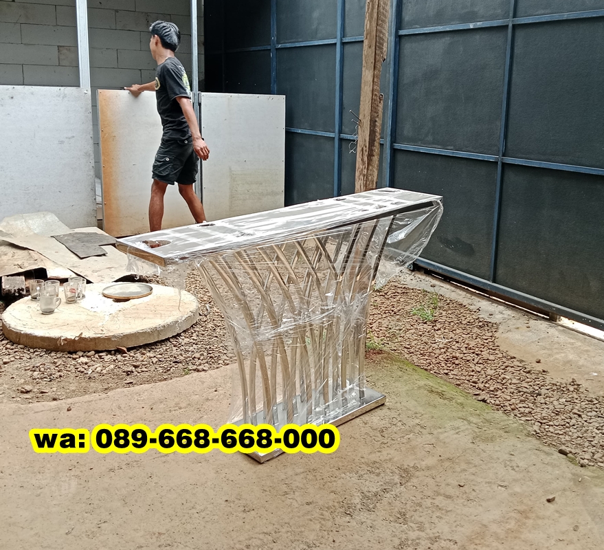 Produk rangka meja konsol tersebut merupakan produk gambar real yang ada di toko kami dengan model bentuk padi yang cukup unik sehingga rangka meja konsol ini sering menjadi incaran customer. Di balik keindahan permukaannya, terdapat satu elemen penting yang sering terlewatkan, yaitu rangka meja konsol. Rangka inilah yang menentukan kekokohan, bentuk, dan bahkan gaya dari sebuah meja konsol sehingga dalam memilih rangka meja tidak bisa sembarangan harus memperhatikan bahan yang digunakan. Rangka Meja Konsol Padi ini terbuat dari bahan stainless Keunggulan utama stainless adalah ketahanannya terhadap karat dan korosi, menjadikannya ideal untuk penggunaan jangka panjang. Rangka dari stainless sangat kuat menopang beban berat, membuatnya cocok untuk meja konsol yang digunakan sebagai tempat pajangan.